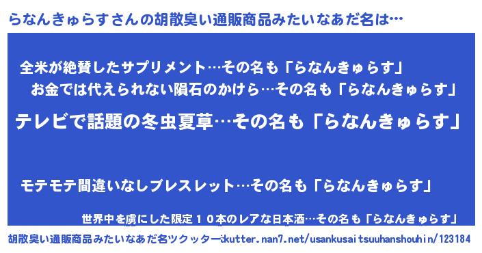 | 意味不明あだ名 | 『自称らなんきゅらす』 |