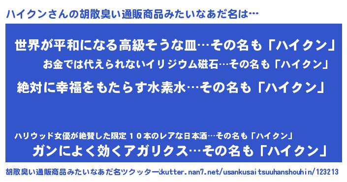 | 意味不明あだ名 | 『しいたけ科ハイクン属』『自称ハイクン』 |