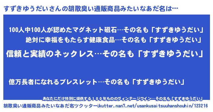 | ヘコむあだ名 | 『すずっ子』『すずきゆうだい(笑)』 |