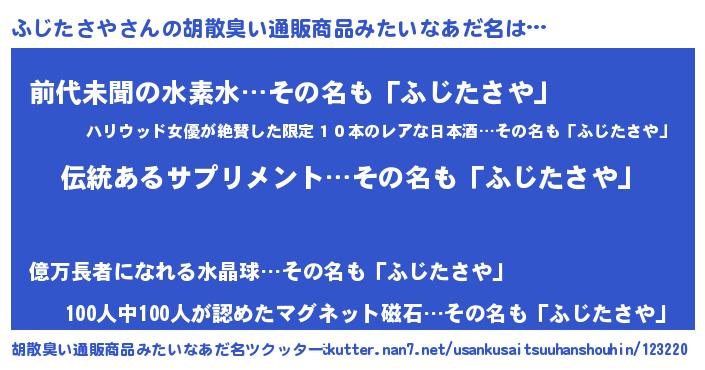 | 意味不明あだ名 | 『とにかく怪しいふじたさや』 |