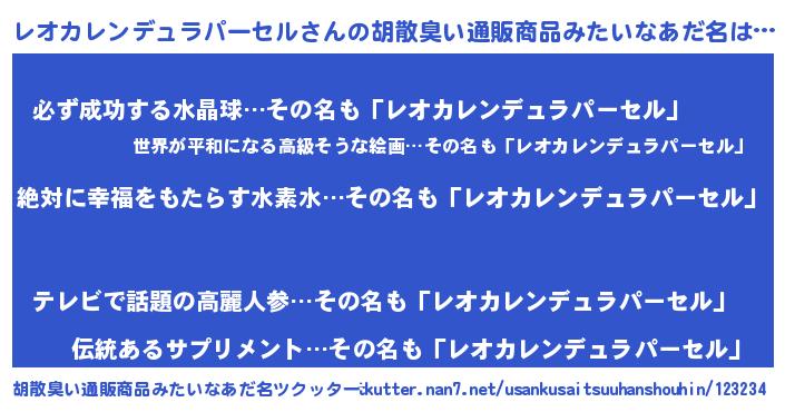 | ヘコむあだ名 | 『レオカレンデュラパーセル(遠い目)』 |