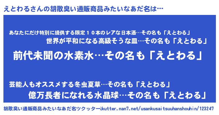| 意味不明あだ名 | 『永久保存えとわる』『ペロリンえとわる』 |