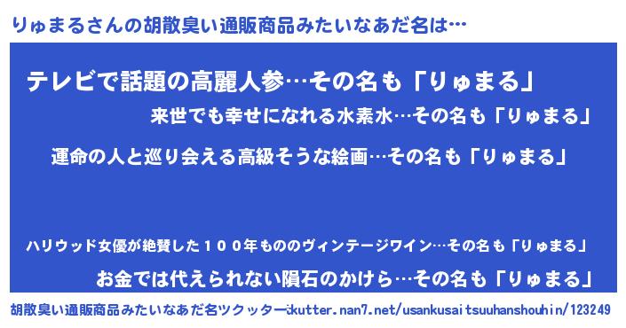 | 意味不明あだ名 | 『りゅまるフォーエバー』『自称りゅまる』 |