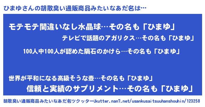 | ヒーロー風カッコイイあだ名 | 『正義の使者ひまゆ』『スーパーヒマユ』 |