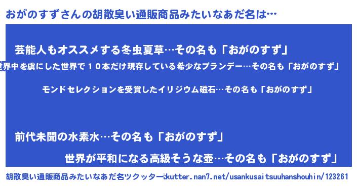 | ヘコむあだ名 | 『酢こんぶ』『おがのすず(震え声)』 |