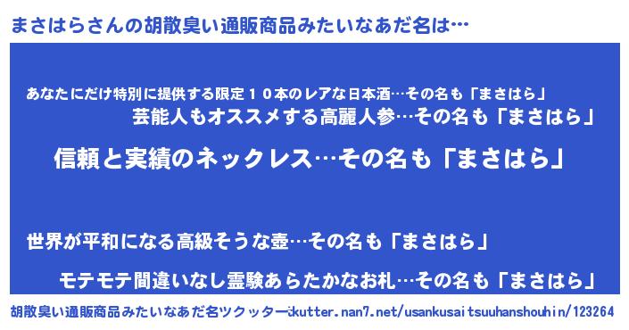 | 意味不明あだ名 | 『とにかく怪しいまさはら』 |