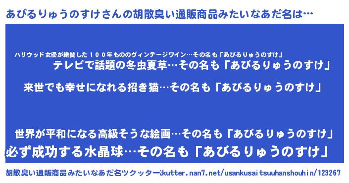 | 意味不明あだ名 | 『永久保存あびるりゅうのすけ』 |