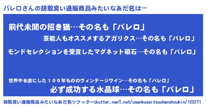 | ヘコむあだ名 | 『バレロ(笑)』『バレっふぃ~』 |
