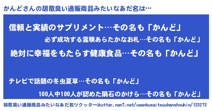 | ヘコむあだ名 | 『かんど(苦笑)』『かんお』 |