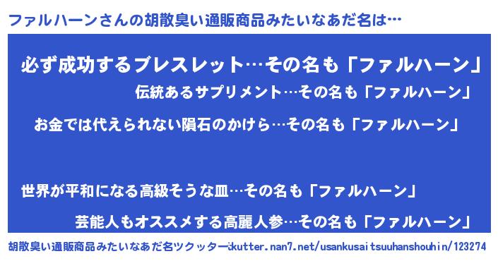 | 男性向けラノベタイトル風あだ名 | 『おまえをオタクにしてやるから、俺をファルハーンにしてくれ! 』 |