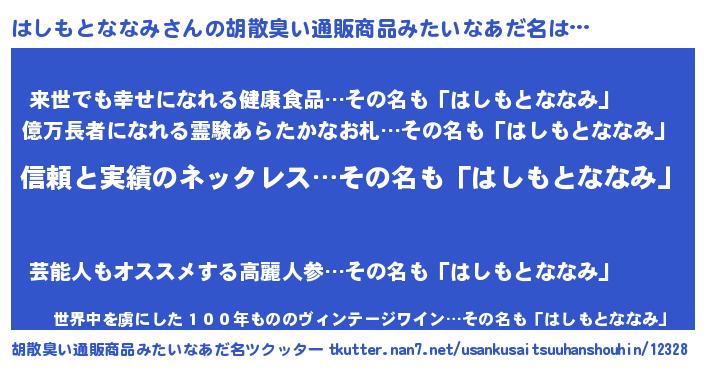 | 意味不明あだ名 | 『とにかく怪しいはしもとななみ』 |