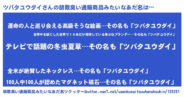 | 意味不明あだ名 | 『自称ツバタユウダイ』 |