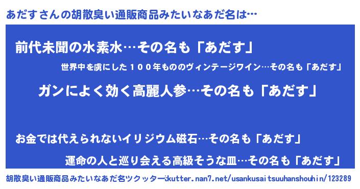 | 意味不明あだ名 | 『自称あだす』『永久保存あだす』 |