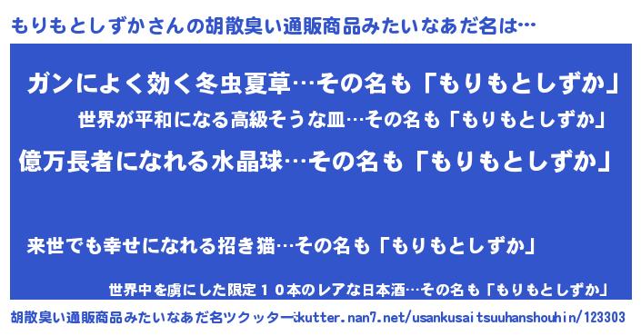 | 意味不明あだ名 | 『ペロリンもりもとしずか』 |