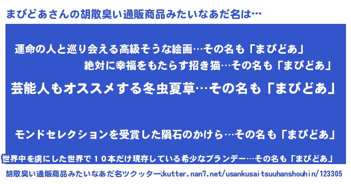 | 意味不明あだ名 | 『自称まぴどあ』『まぴどあフォーエバー』 |