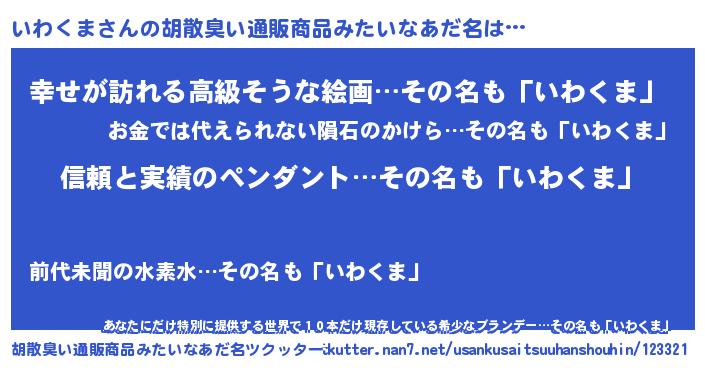 | 意味不明あだ名 | 『とにかく怪しいいわくま』 |