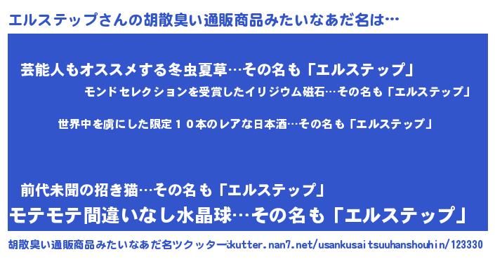 | 意味不明あだ名 | 『住所不定無職エルステップ(62歳)』 |
