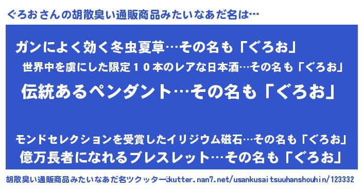 | 意味不明あだ名 | 『とにかく怪しいぐろお』『自称ぐろお』 |