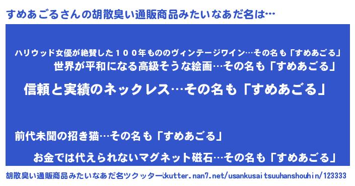 | 意味不明あだ名 | 『とにかく怪しいすめあごる』 |
