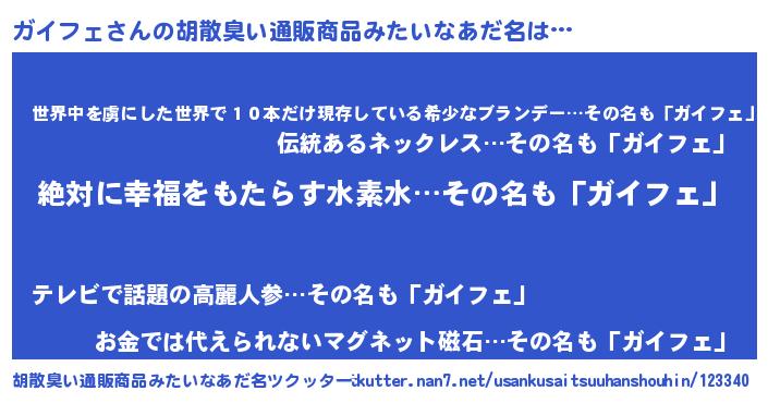 | 意味不明あだ名 | 『永久保存ガイフェ』 |