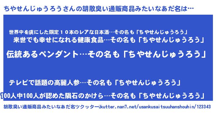 | 意味不明あだ名 | 『とにかく怪しいちやせんじゅうろう』 |