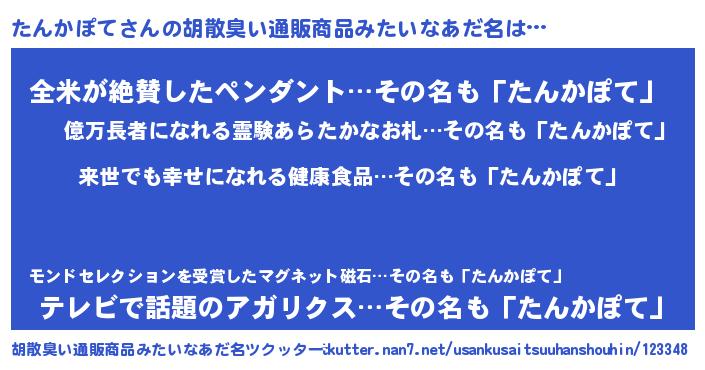 | ヘコむあだ名 | 『たんかぽて(爆)』『たんっぺ』 |