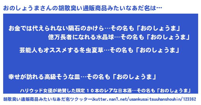 | 意味不明あだ名 | 『自称おのしょうま』 |