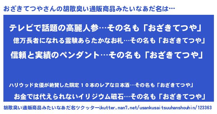 | 欧米人風あだ名 | 『ウサインおざきてつや』 |