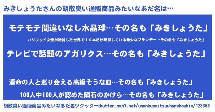| 料理風あだ名 | 『みきしょうたごはん』 |