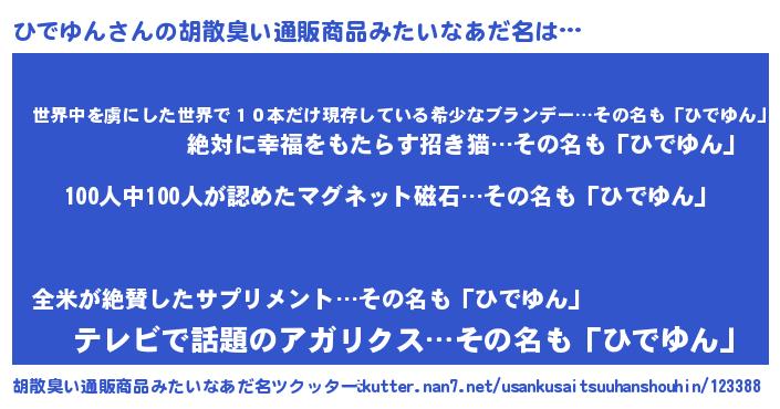 | ヘコむあだ名 | 『ひでゆん(小並感)』『ひでぷりん』 |