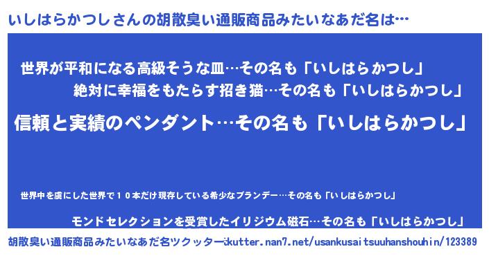 | 肩書あだ名 | 『いしはらかつし上級大将』 |