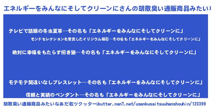 | ヘコむあだ名 | 『エネルギーをみんなにそしてクリーンに(小並感)』 |