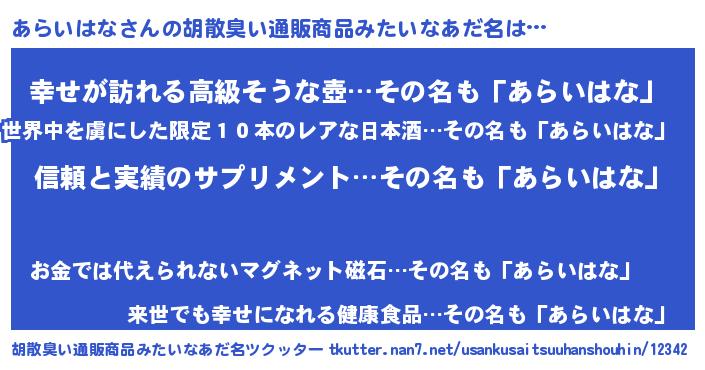 | 意味不明あだ名 | 『とにかく怪しいあらいはな』 |