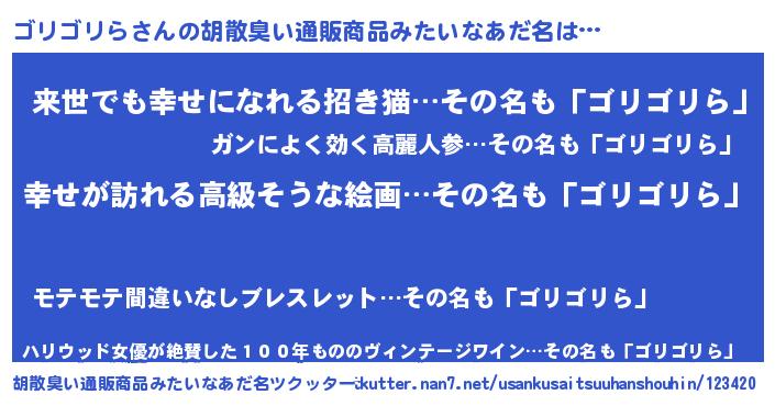 | 男性向けラノベタイトル風あだ名 | 『やはりゴリゴリらの青春ラブコメはまちがっている 』 |
