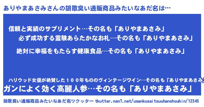 | 意味不明あだ名 | 『永久保存ありやまあさみ』 |