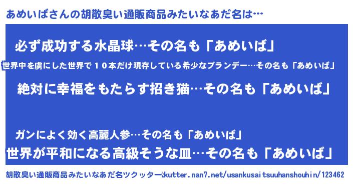 あめいばさんの胡散臭い通販商品みたいなあだ名をツクッター!
