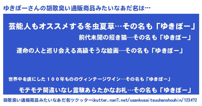 | 男性向けラノベタイトル風あだ名 | 『ゆきぼー~年齢イコール彼女いない歴の魔法使い~』 |