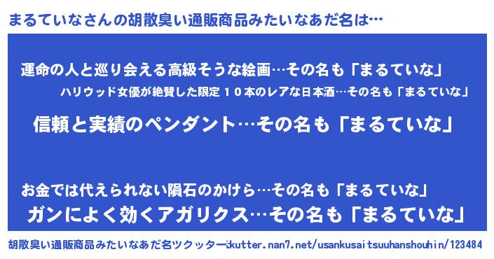 | 意味不明あだ名 | 『とにかく怪しいまるていな』 |