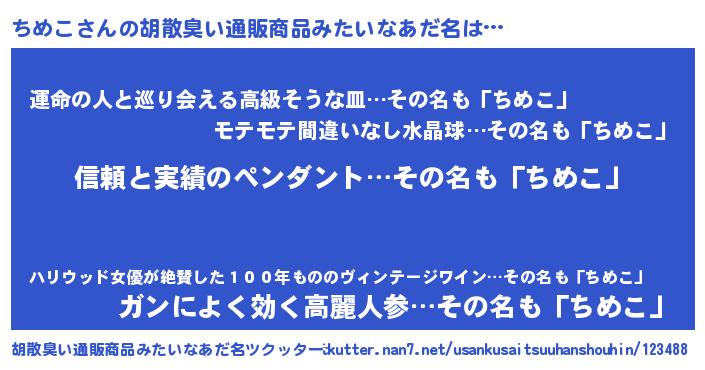 | 意味不明あだ名 | 『とにかく怪しいちめこ』『自称ちめこ』 |