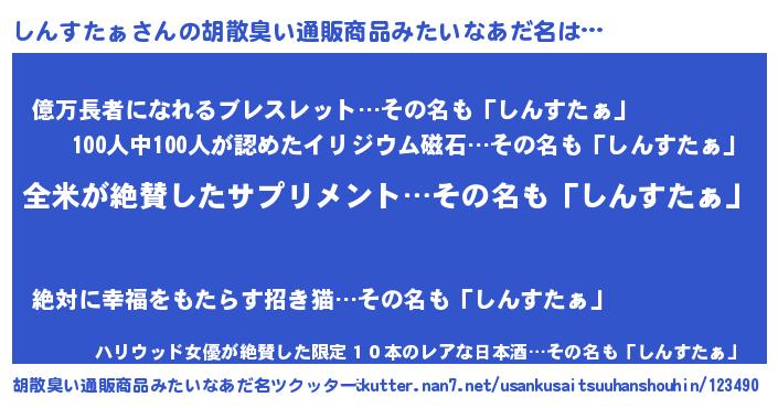 | 女子向けラノベタイトル風あだ名 | 『しんすたぁ様がみてる』 |