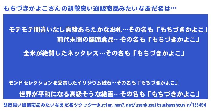 | 意味不明あだ名 | 『とにかく怪しいもちづきかよこ』 |