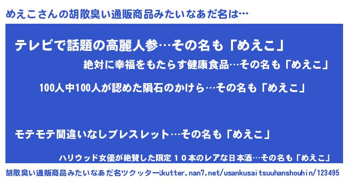 | ヒーロー風カッコイイあだ名 | 『正義の使者めえこ』『仮面メエダー』 |