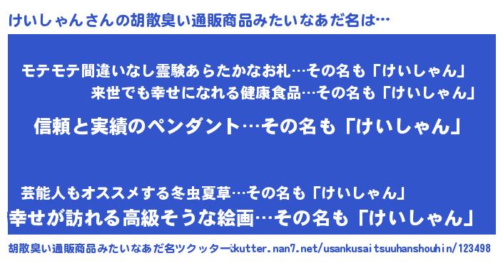 | ヒーロー風カッコイイあだ名 | 『暗黒騎士ケイ』『スーパーケイシャン』 |