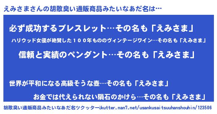 | 意味不明あだ名 | 『とにかく怪しいえみさま』 |