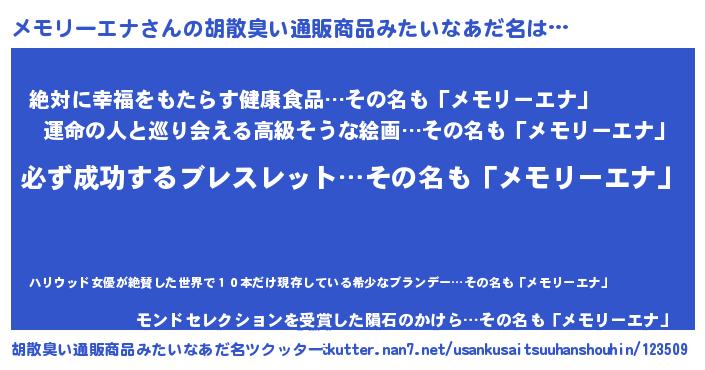 | ヘコむあだ名 | 『メモにー』『メモリーエナ(小並感)』 |