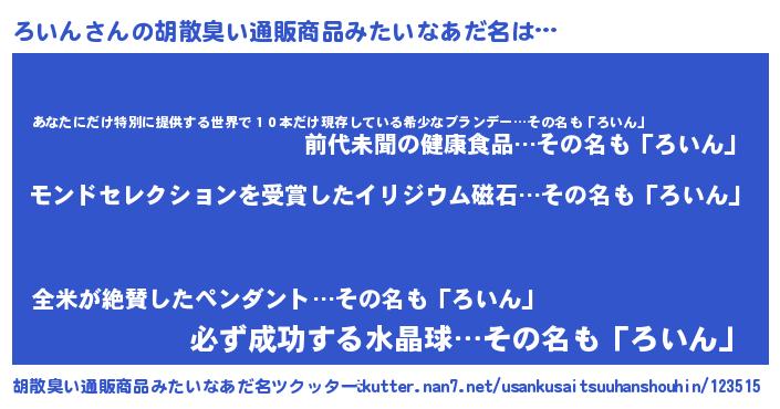 | ヘコむあだ名 | 『ろいにゅー』『ろいん(爆)』 |