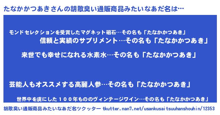 | ヘコむあだ名 | 『たなかかつあき(苦笑)』『たなっ子』 |