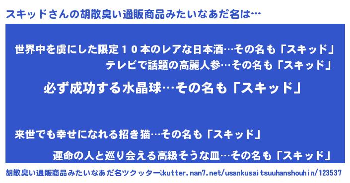 | 意味不明あだ名 | 『ペロリンスキッド』『自称スキッド』 |