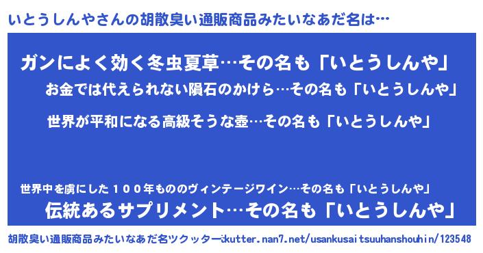 肩書あだ名 | 『いとうしんや少将』『いとうしんや閣下』 |