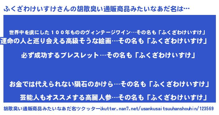 | 男性向けラノベタイトル風あだ名 | 『ふくざわけいすけの憂鬱』 |